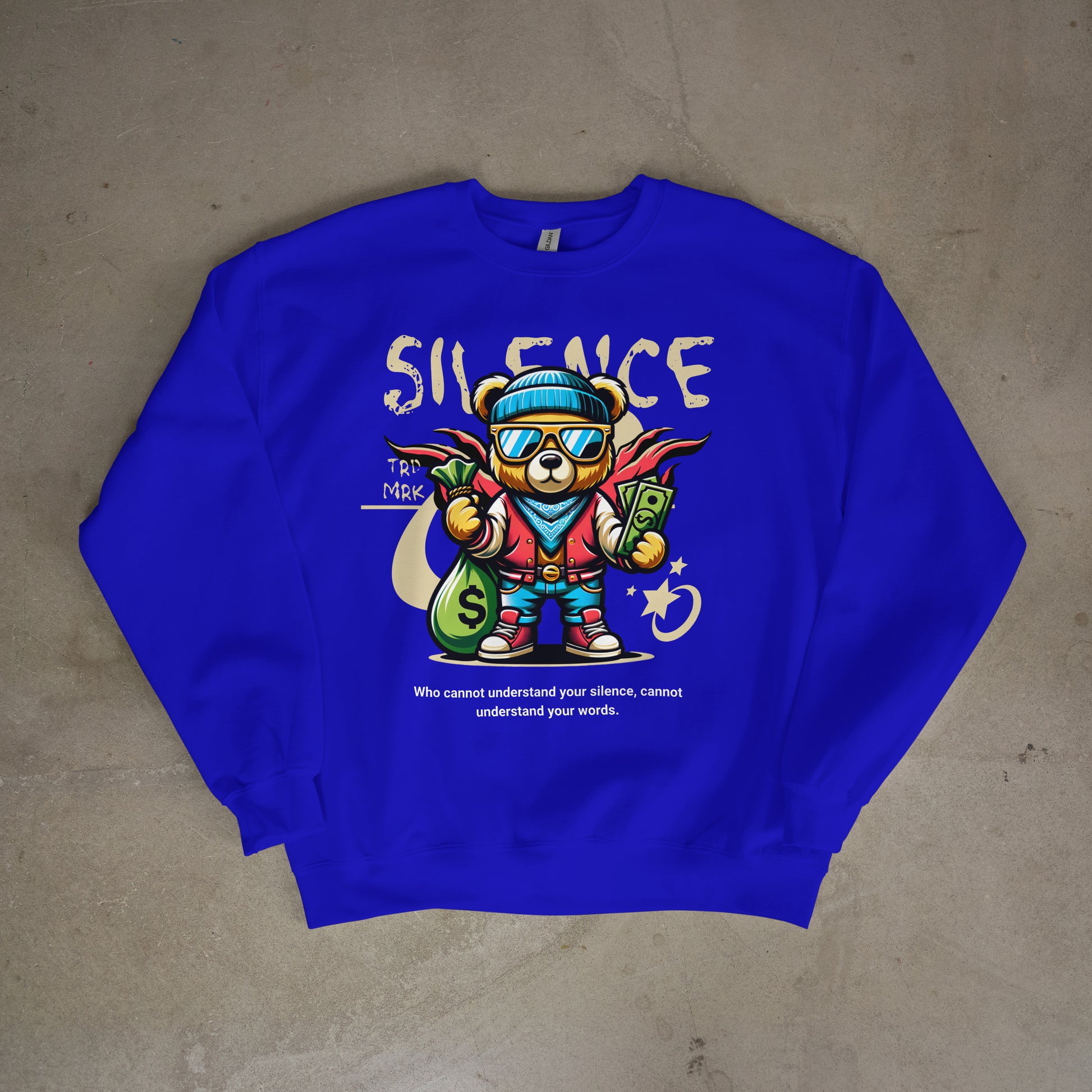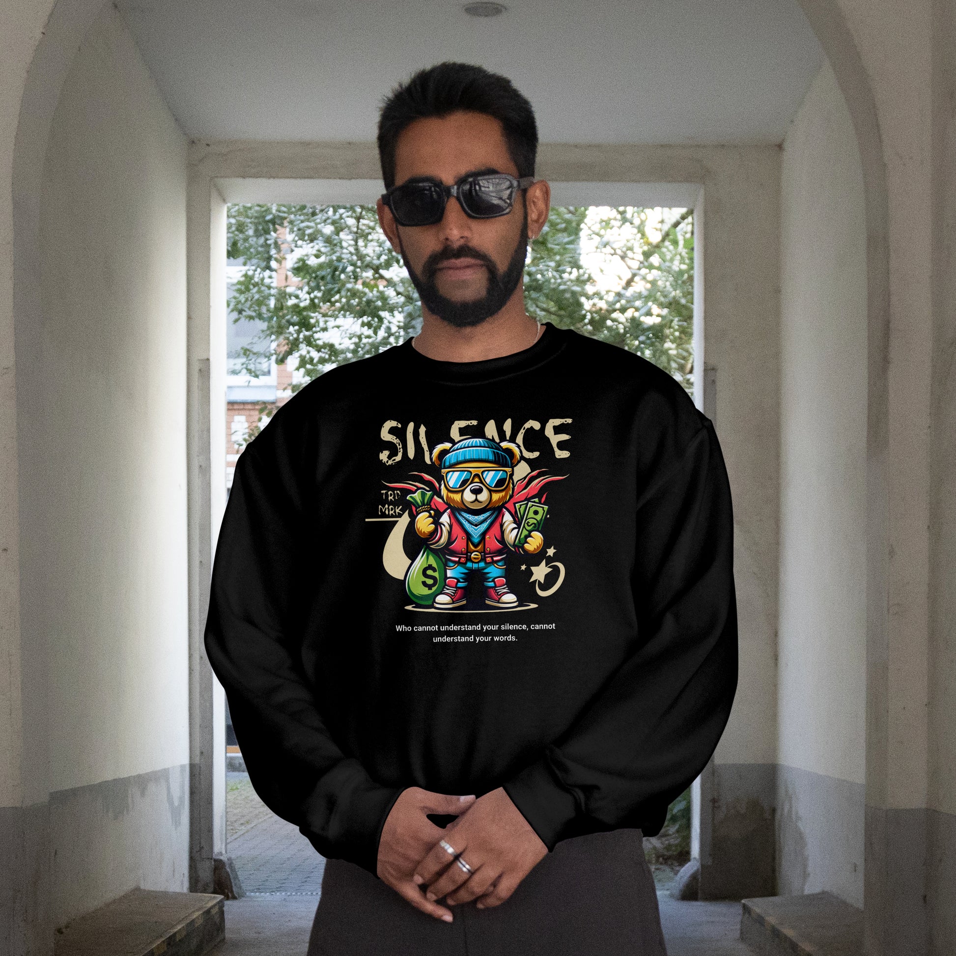 ✨ Discover the Silence money bear graphic design sweatshirt, perfect for any occasion. This unisex pullover hoodie features a unique graphic that stands out. Ideal for men, it offers a versatile look suitable for casual outings.The design is simple yet striking, making it a must-have for your wardrobe.